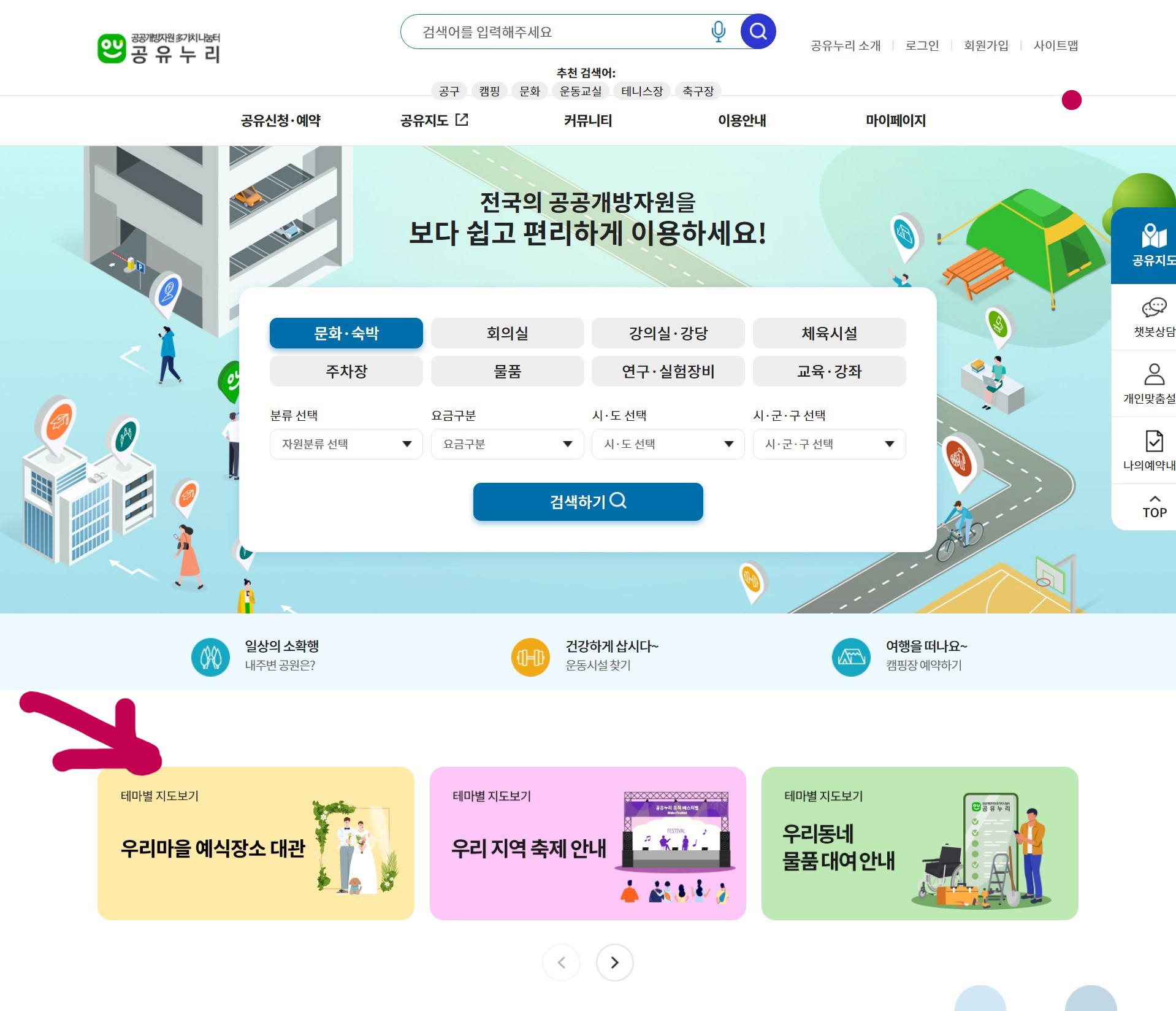 공유누리 누리집에서 예약.신청가능
