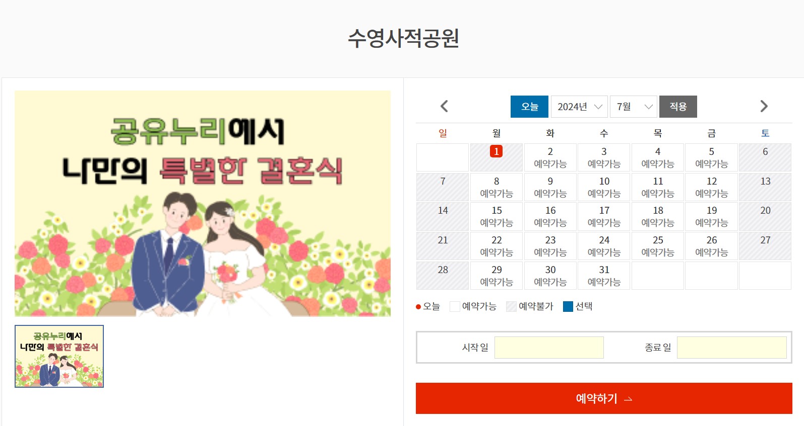 공공예식장을 클릭하면 바로 예약이 가능합니다