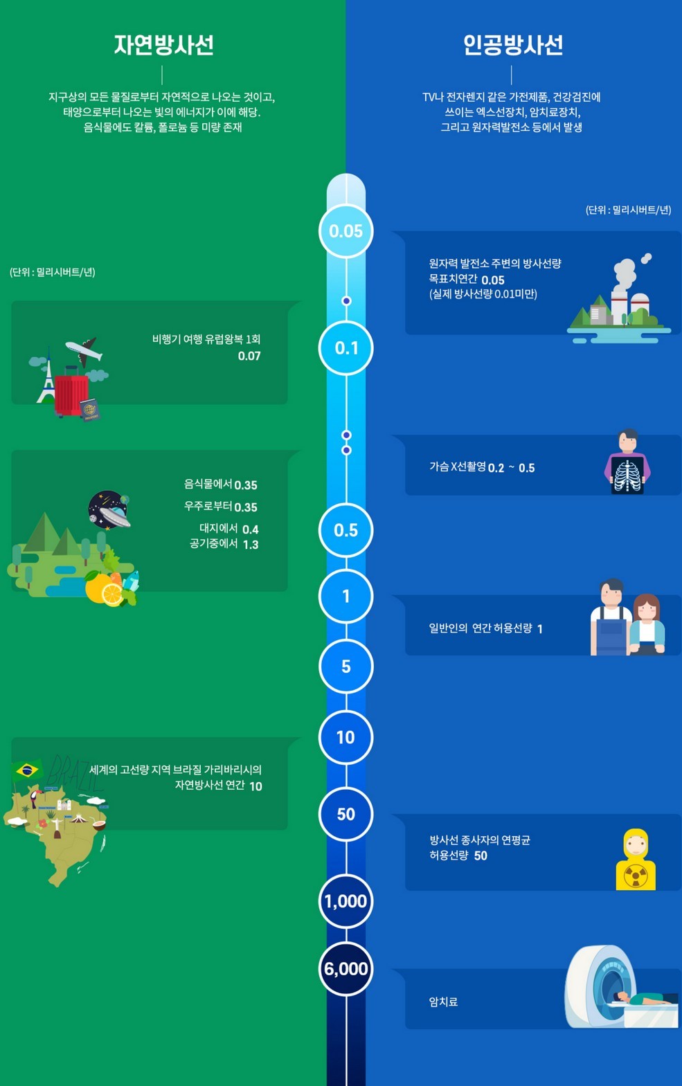 방사선은 자연방사선, 인공방사선 2가지로 구분된다